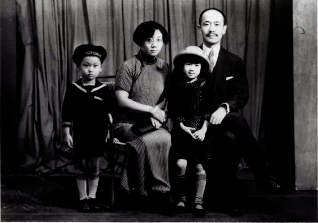 1948年,周均时与妻女摄于上海