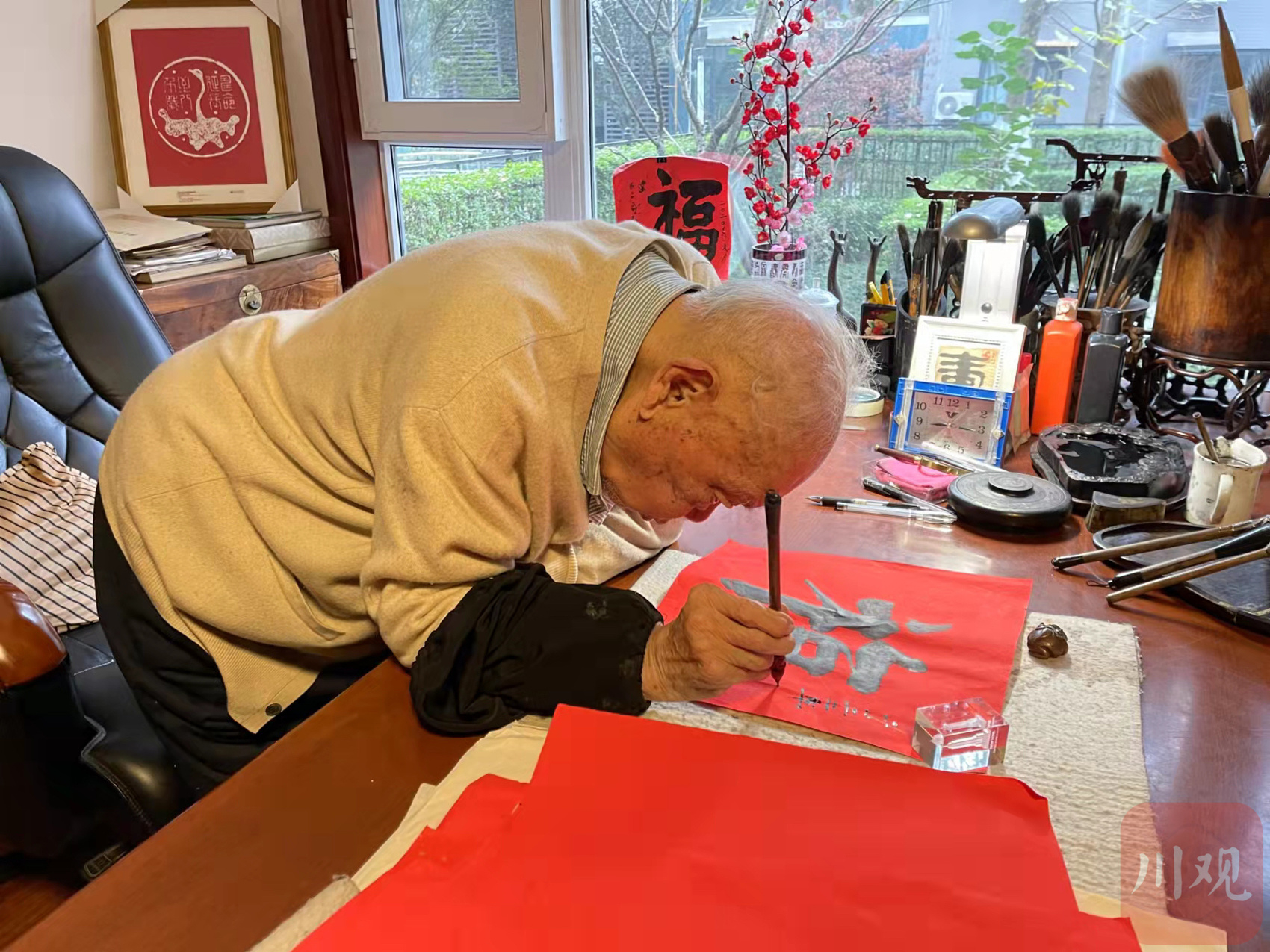 马老写“福” 马老家人供图