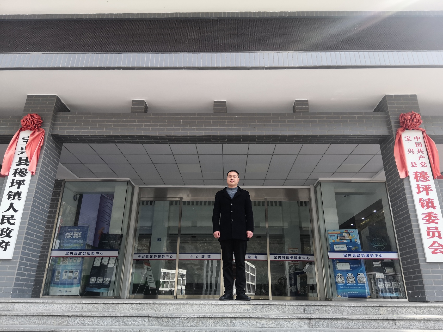 李智宽在穆坪镇党委、镇政府办公地留影