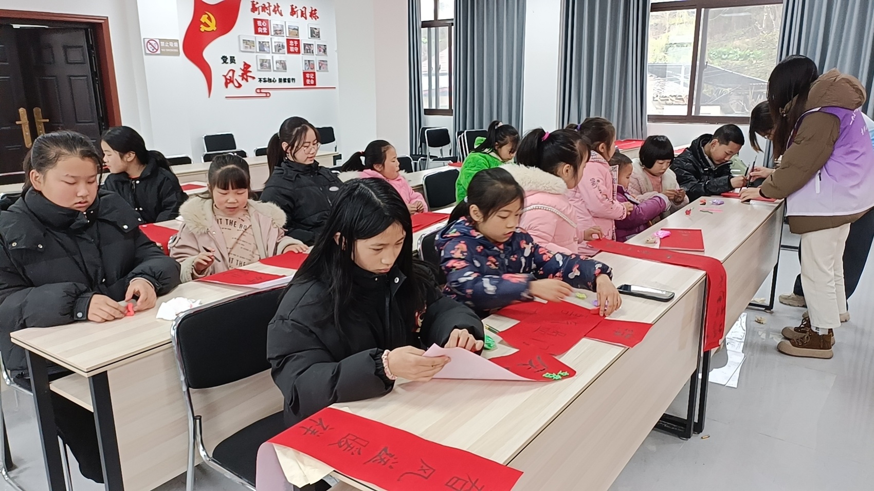 春节临近,马雪梅组织村里留守儿童一起写春联。