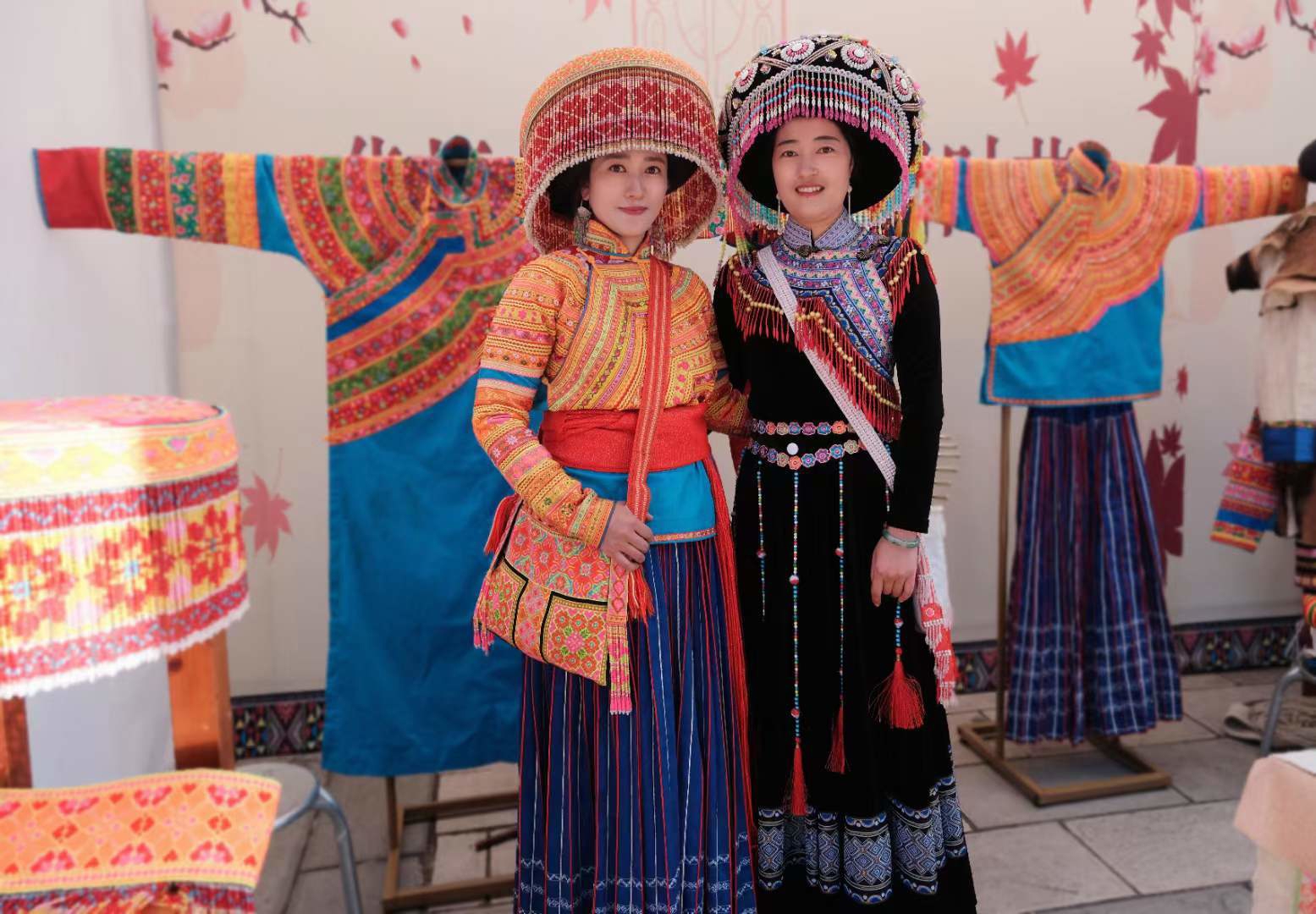 谷艳(左)身穿傈僳族传统服饰。受访者供图