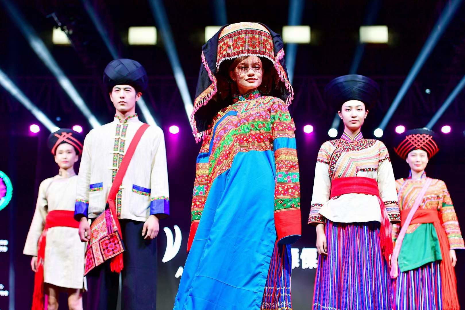 模特身穿“傈僳霓裳”走秀。受访者供图
