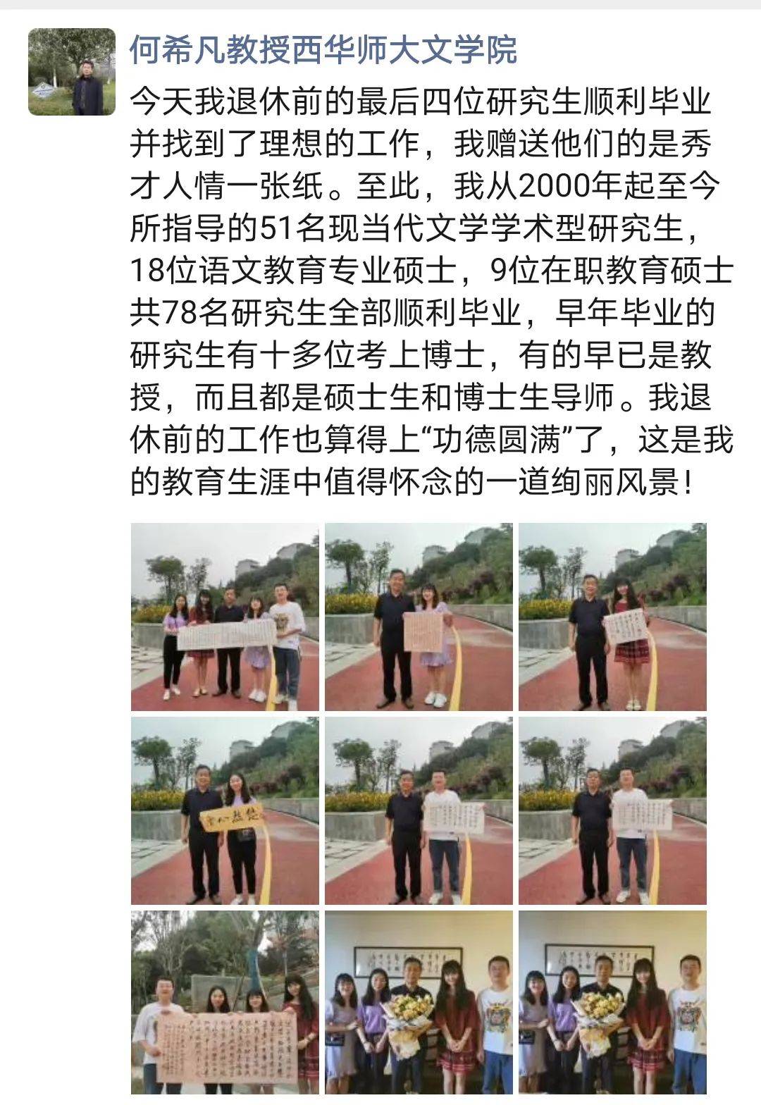2020年6月11日,本文作者何希凡在微信朋友圈的留言(蓬州闲士 供图)