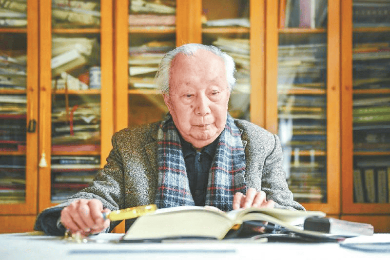 刘诗白使用放大镜阅读书籍