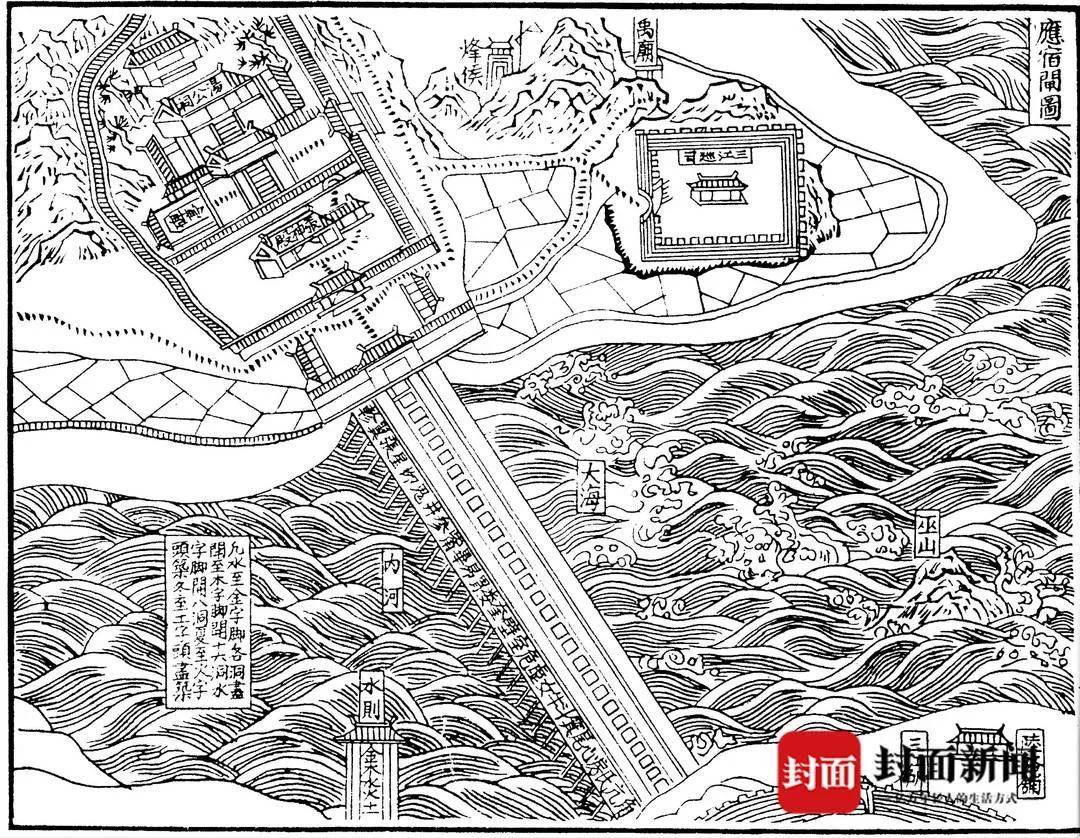 三江应宿闸平面图(录自明万历《绍兴府志》,图据邱志荣)