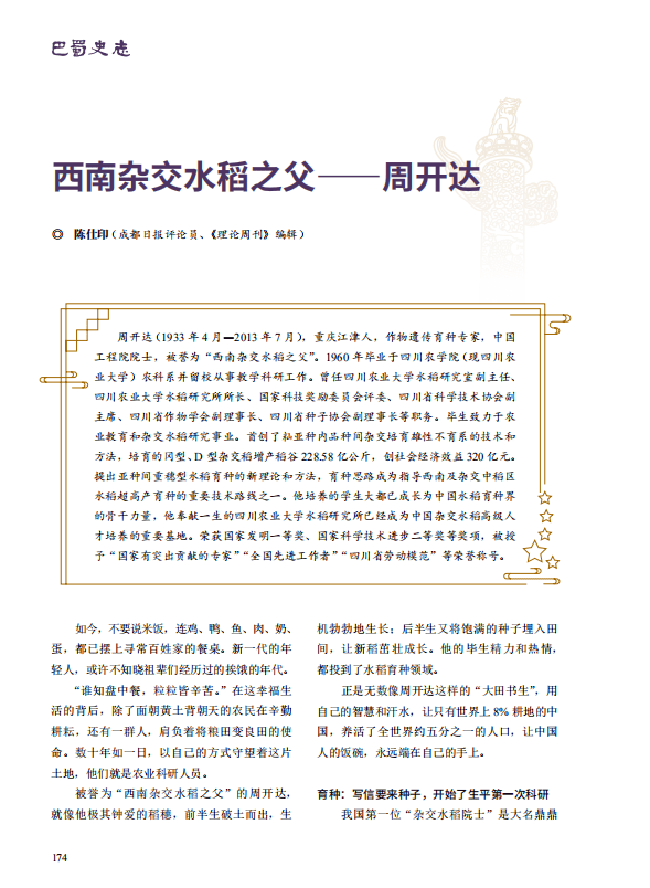 【人物】西南杂交水稻之父——周开达||陈仕印