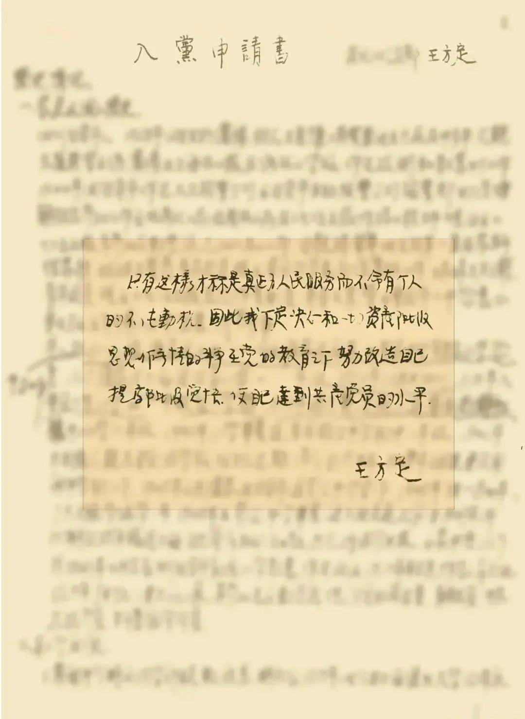 通过在学校接受的各种爱国主义教育以及政治运动,王方定改变了纯技术观点的思想,在大学阶段就加入了中国共产党,完成了思想上的转变。1953年大学毕业时,王方定坚决服从组织分配,认为什么地方最没有人愿意去,而组织最需要的,他就愿意去。“别人都不想当助教,我的第一个志愿就填助教。”王方定说。