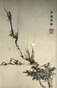 次年春夏例居乡舍,客至则露坐庭隅,待以蔬味,教家人体念时艰。江翊云来,割窗心柳、竹画幅,题诗赠之。