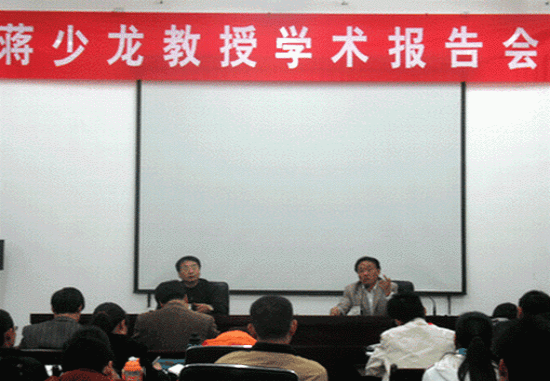图为笔者(前右)当年在河南大学作《股份制与国企改革》学术报告