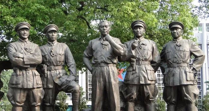 八一南昌起义纪念馆前反映周恩来、贺龙、朱德等八一南昌起义领导人运筹帷幄的群雕《一代英豪》(图片来源:中国军网)