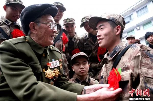 2010年12月10日下午,抗美援朝一级战斗英雄、特等功臣柴云振,在四川省广安市岳池县新兵入伍欢送仪式上给新兵讲战斗小故事。他以一个老兵的身份欢送这些新兵,并为新兵们讲解革命战斗故事,祝福他们在军营好好锻炼(邱海鹰 摄,图片来源:中新网)