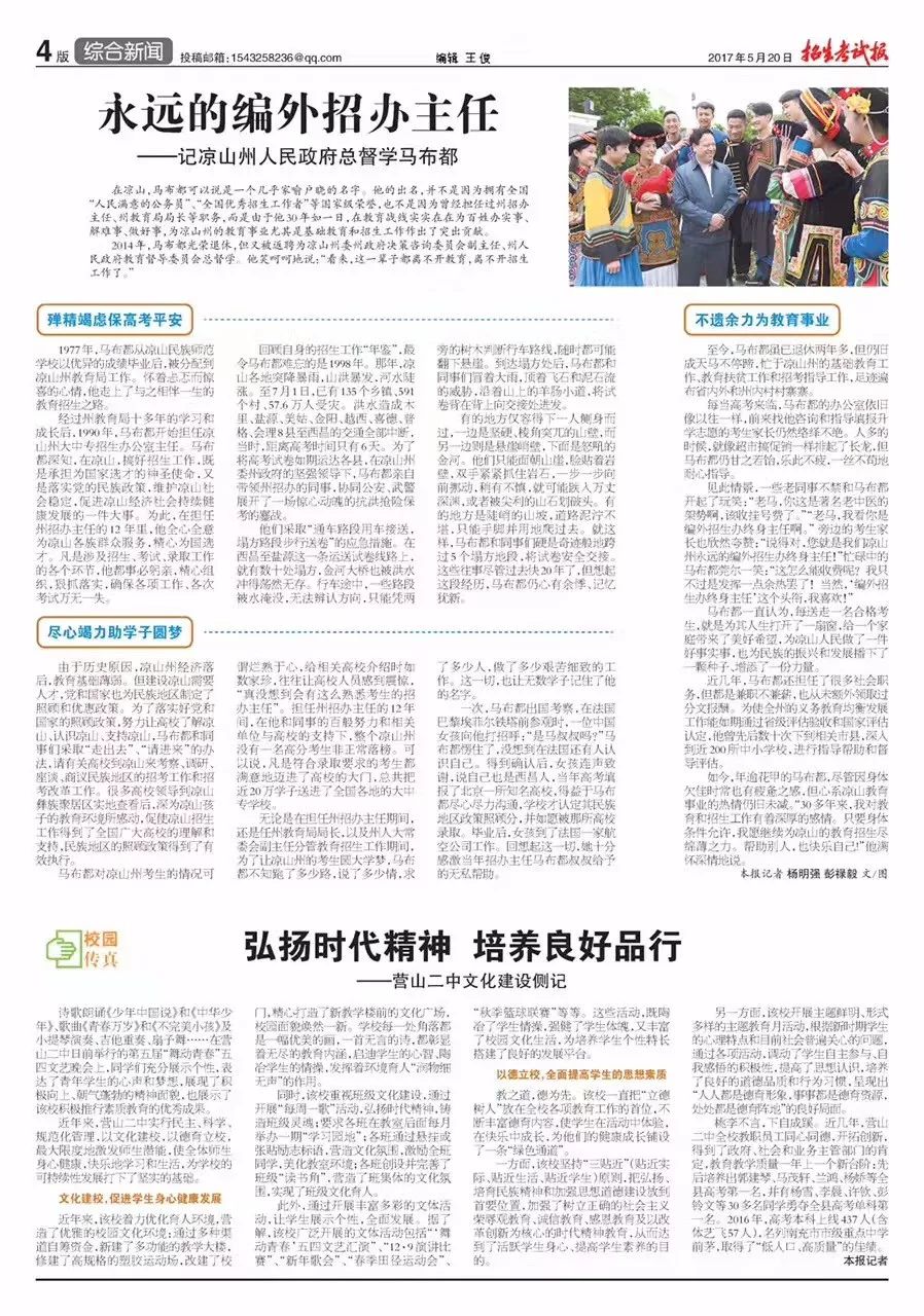 2017年5月20日,《招生考试报》对马布都的采访报道(杨明强 供图)