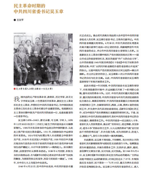 【方志四川•蜀中人物】王友平 ‖ 民主革命时期的中共四川省委书记吴玉章