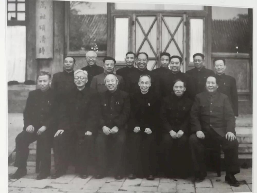 1949年9月21-30日,中国人民政治协商会议第一届全体会议在北平举行。这是出席会议的中共代表团在中南海合影。前排右起毛泽东、徐特立、吴玉章、董必武、林伯渠、刘少奇。后排右起齐燕铭、陆定一、周恩来、徐冰、彭真、陈云、李克农、刘涌涛、安子文(图片来自网络)