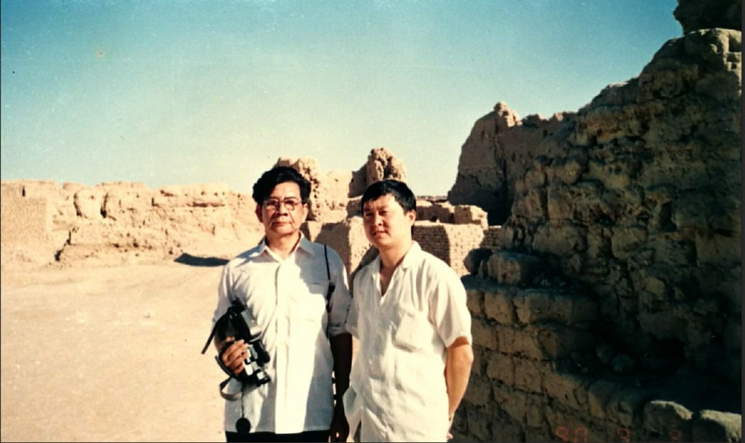 1990年9月,李焕民先生(左)在新疆高昌故城留影(右为汪毅)