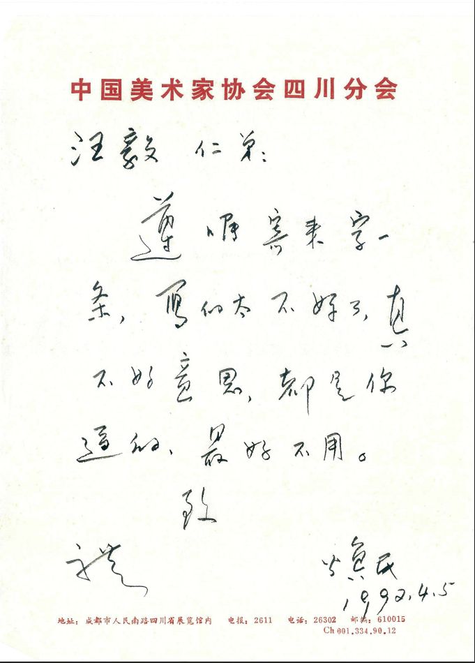 1992年4月5日,李焕民致汪毅信。