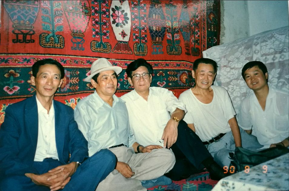 1990年9月,在新疆维吾尔族同胞家做客(左起:倪锡文、赛普鲁、李焕民、齐兵、汪毅)