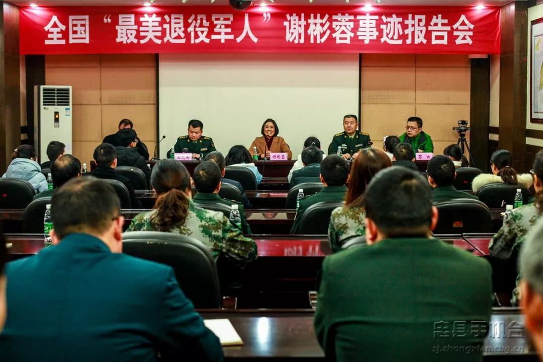 2019年2月13日下午,应重庆市忠县人武部邀请,“最美退役军人”、被誉为盛开在大凉山上的“铿锵玫瑰”的原空军某部高级工程师谢彬蓉回到家乡,向忠县人武部全体干部、驻忠部队官兵代表、忠县退役军人事务局干部、民兵预备役人员及中小学师生代表分享其成长、成才及成功的历程(图片来源:忠县网络广播电视台网)