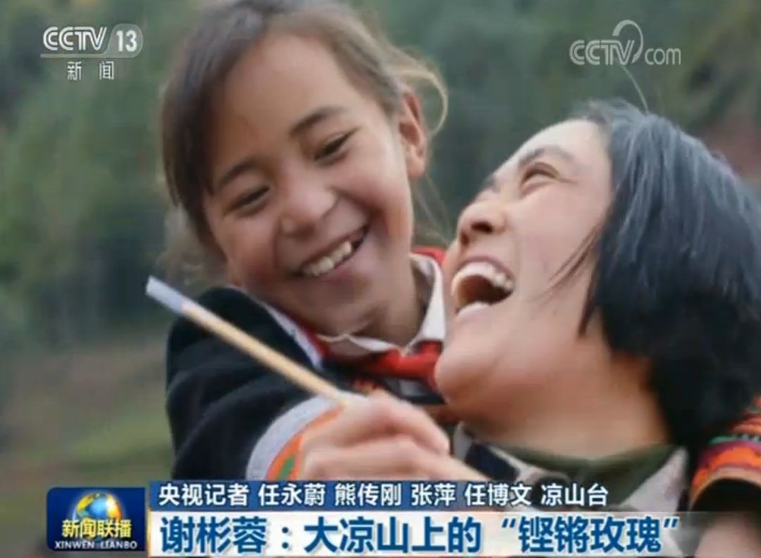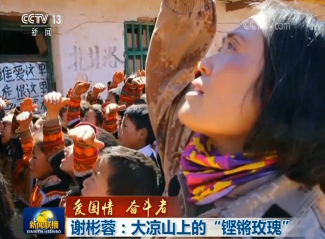 2019年5月12日晚,中央电视台《新闻联播》在“爱国情 奋斗者”栏目,以《谢彬蓉:大凉山上的“铿锵玫瑰”》为题,用4分钟时间报道了谢彬蓉的支教事迹。以下为《新闻联播》报道文字内容: