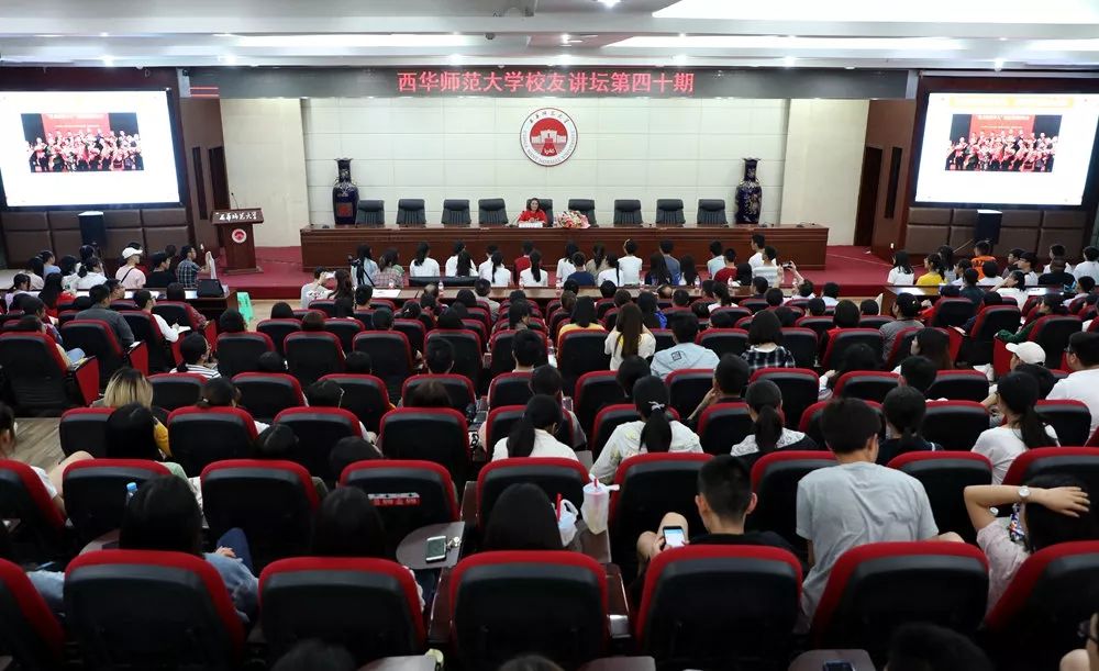 2019年5月1日晚,谢彬蓉做客西华师范大学第四十期校友讲坛暨第二期学子讲堂(图片来源:西华师范大学网)