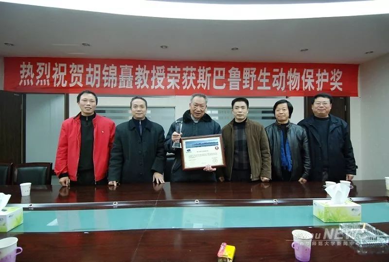 2008年12月,胡锦矗教授获斯巴鲁野生动物保护奖(图片来源:西华师范大学网)