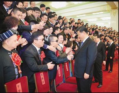 5月16日,党和国家领导人习近平、李克强、王沪宁等在北京人民大会堂会见第六次全国自强模范暨助残先进表彰大会代表(图片来源:人民网)