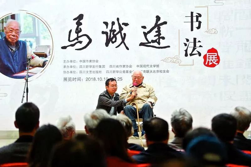 2018年10月10日,中国作家协会主办,四川省新华发行集团、四川省作家协会、中国现代文学馆承办的“马识途书法展暨《马识途文集》发布会”在北京中国现代文学馆举行。图为马识途在书法展开幕式上致辞(四川日报记者杨树摄,图片来源:四川日报)