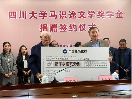 2019年3月28日,四川大学“马识途文学奖学金”捐赠签约仪式在四川大学望江校区文科楼举行(图片来源:川报观察)