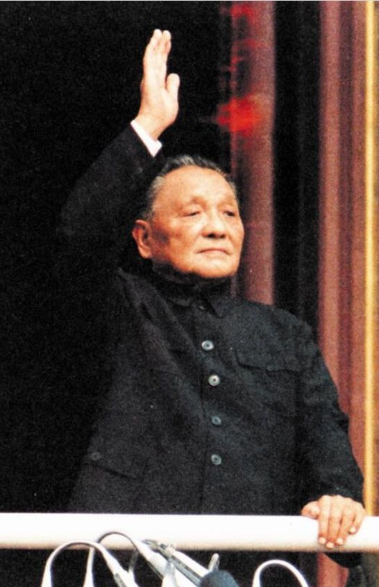 1984年10月1日,邓小平出席中华人民共和国成立35周年阅兵式和群众游行活动,图为邓小平向群众招手致意(图片来源:广安在线)
