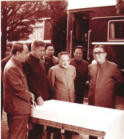 1982年9月19日,邓小平陪同金日成赴四川访问途中,在观音山站下车,观看火车穿越秦岭大盘山道示意图(图片来源:广安日报)