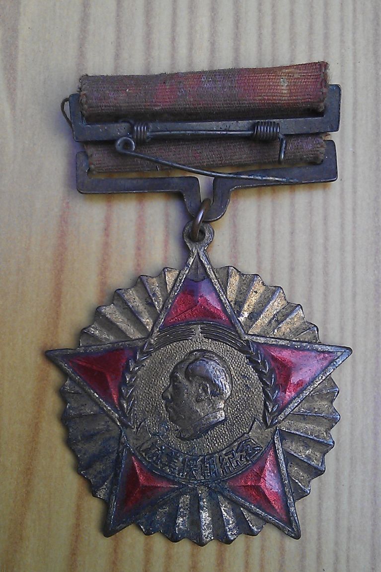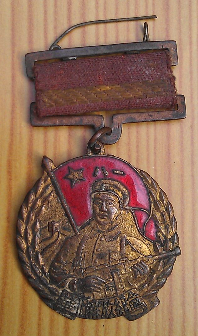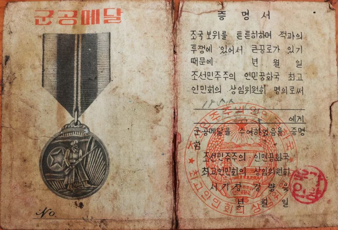 为巩固国家保卫,在与敌人的斗争中做出很大的功劳。朝鲜民主主义人民共和国最高人民会议常任委员会于1955年特此授予军功奖章,以兹证明。