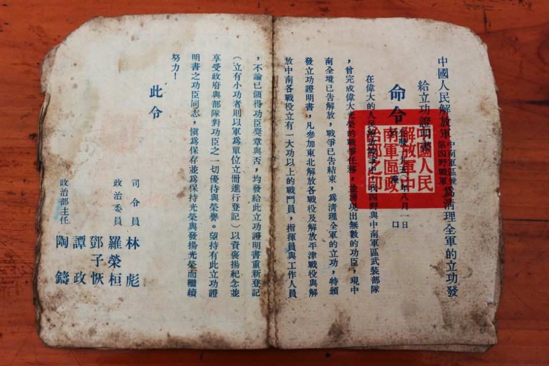 我们和老人聊到抗日战争的经历时,老人激动得把他多年珍藏的宝贝都一一拿出来,这些物件、资料,一件比一件珍贵,一件比一件沉重……