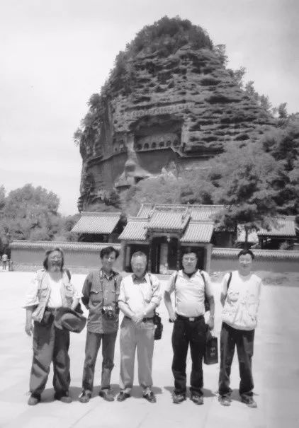 2004年5月14日,在甘肃天水麦积山摩崖石刻参观,从左至右为:李星星、段渝、李绍明、陈剑、石硕 (图片来源: 行脚成都)