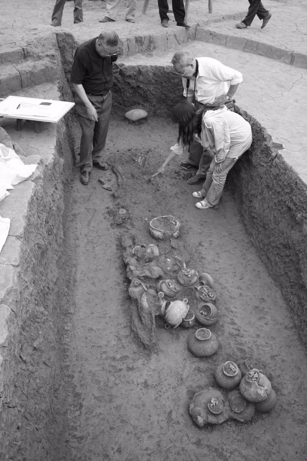 2005年5月20日,李绍明、林向考察水富张滩坝墓葬发掘(李星星 供图)