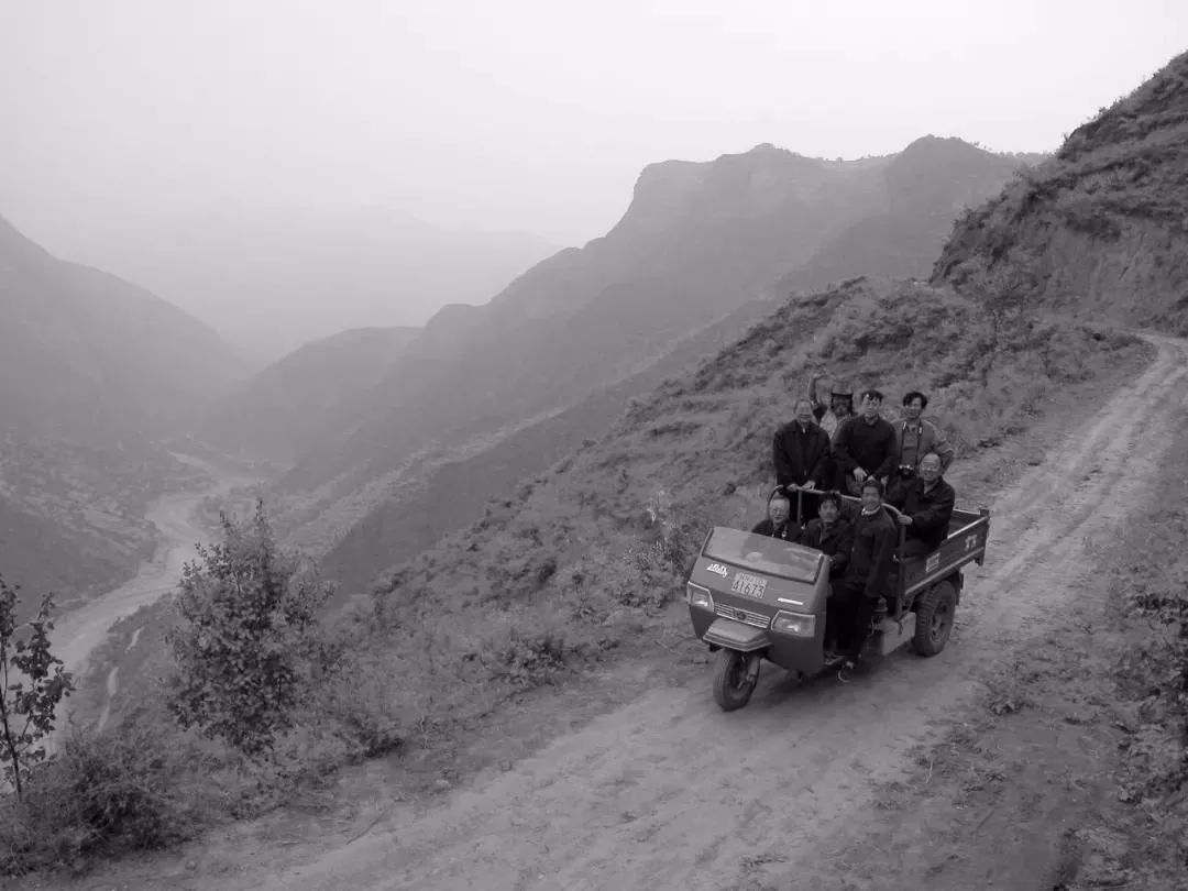2004年5月9日,李绍明率长江上游古代文明研究课题组搭乘农民的运输三轮上仇池山考察(图片来源: 行脚成都)