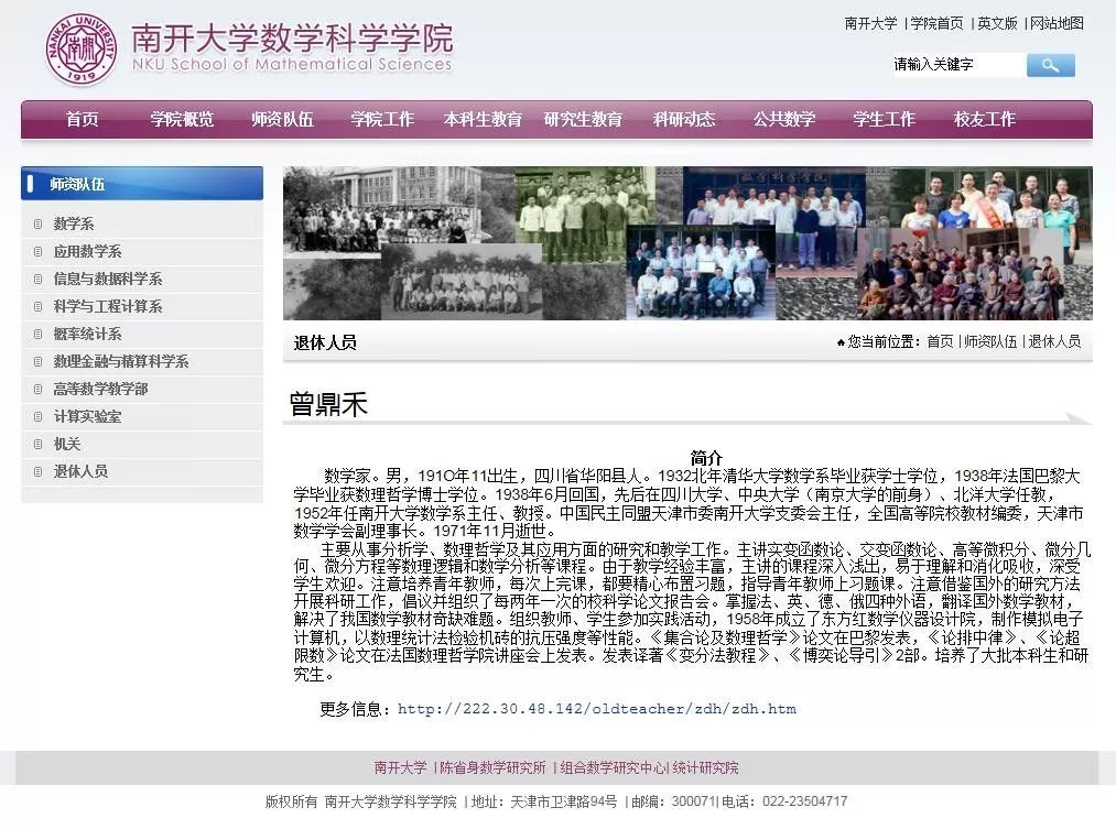 南开大学数学科学学院关于曾鼎禾的介绍