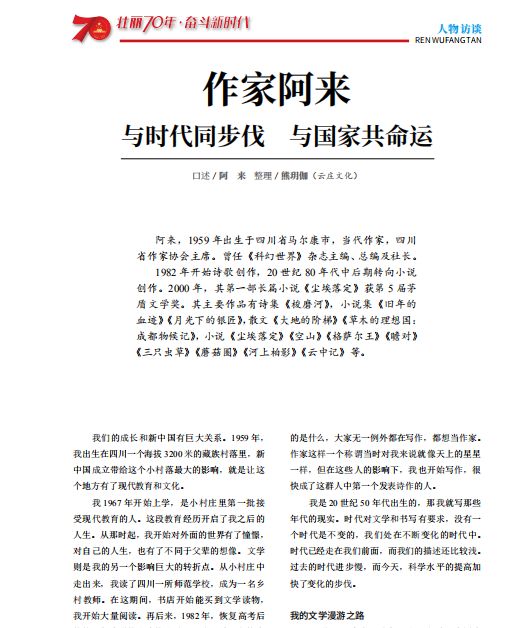 作家阿来 与时代同步伐 与国家共命运