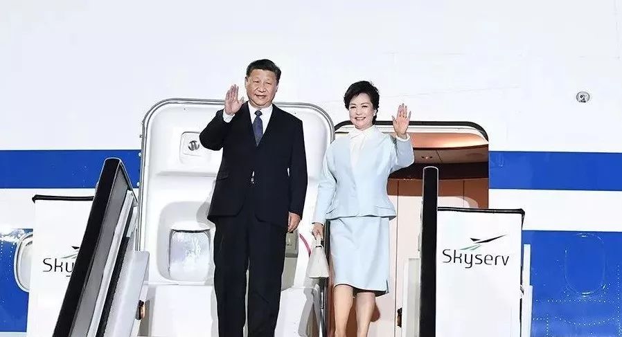当地时间2019年11月10日晚,国家主席习近平乘专机抵达雅典国际机场,开始对希腊共和国进行国事访问。这是习近平和夫人彭丽媛步出专机舱门(新华社记者 谢环驰 摄,图片来源:新华网)