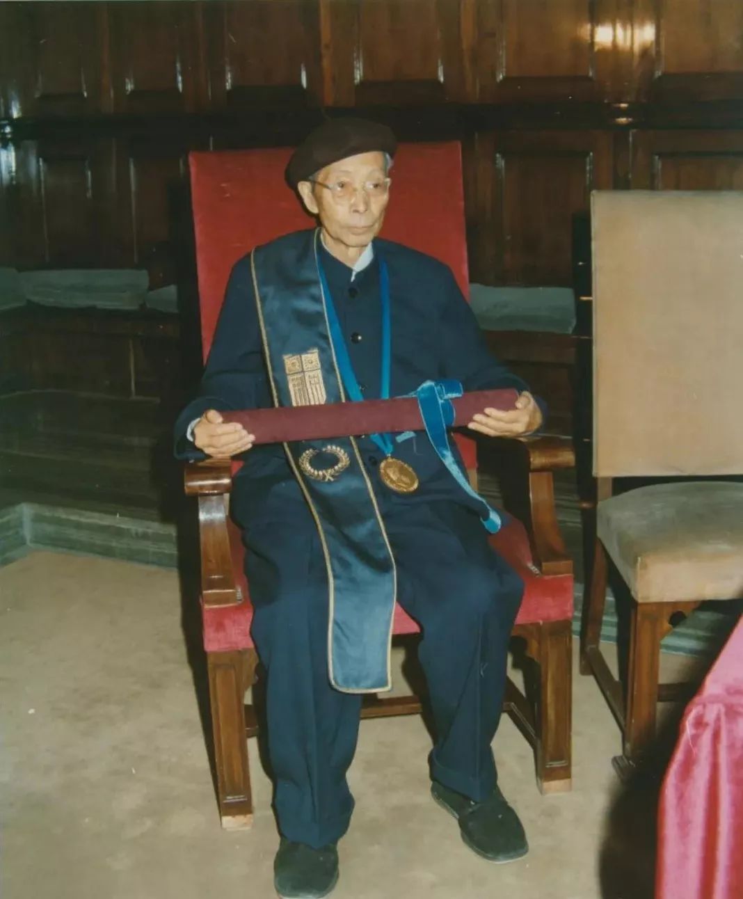 1988年11月,希腊帕恩特奥斯政治和科技大学授予其"荣誉博士"称号(余远文 供图)