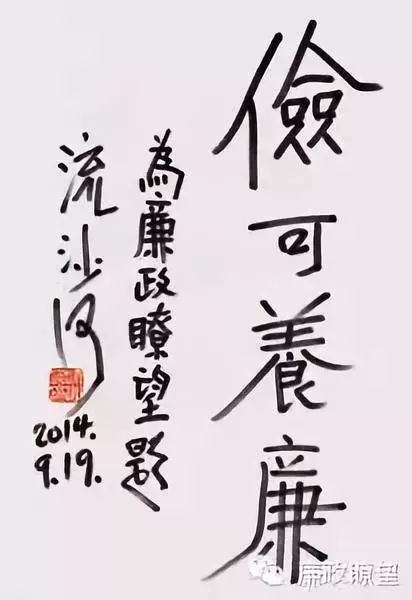 一聊起解字,流沙河变得非常兴奋,在草稿纸上一笔一划地展示汉字的演变,绘声绘色地讲解造字的道理。“你看‘长’的正体字,下面是一个人,上面有三横,代表长长的头发。古代人身体发肤受之父母,头发也是不剪的,长得很长。”仿佛有点石成金的本领,汉字一经他的讲解,一个个都神气活现起来。他还特意写了“俭可养廉”四个字送给廉政瞭望。