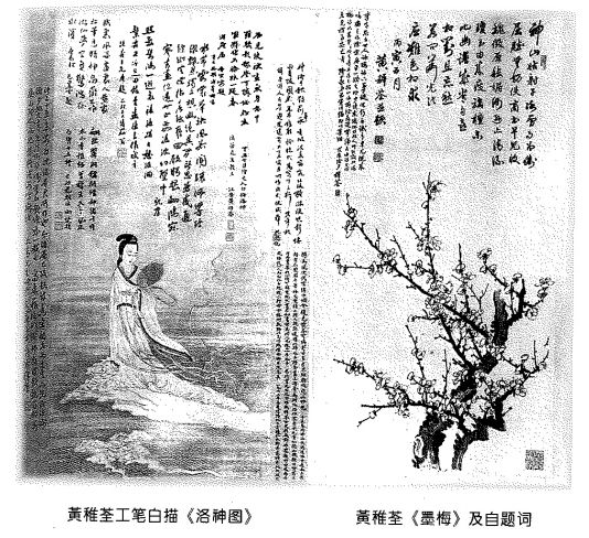 黄稚荃喜画墨梅。29岁时所作工笔白描《洛神图》,空灵飘逸,深得曹植《洛神赋》之神韵,诸多名家曾为该画题款。黄稚荃一生最喜爱画墨梅,谓“凡草木皆无岁寒之操,而此花独全君子之节。”她笔下的梅花寄托着她一生崇尚并奉行中国知识分子秉承的气节和操守。