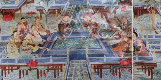张大千临摹的敦煌壁画《观无量寿经变》中的乐队