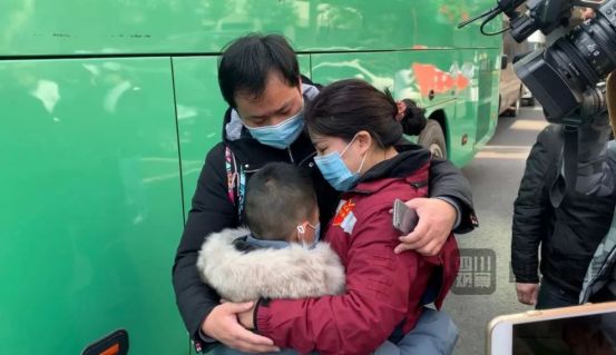 大年初一,138人组建的四川第一批援助湖北医疗队集结出发,出征湖北抗击新型肺炎第一线。在为出征队员送行的人群中,有一位特别的人——7岁小男孩儿严皓,他今天来送的,是他的妈妈,省人民医院感染科护士吴焰宇。临行前,严皓对妈妈说:“一定要保护好自己,不要感染了!我们等着你回来!”