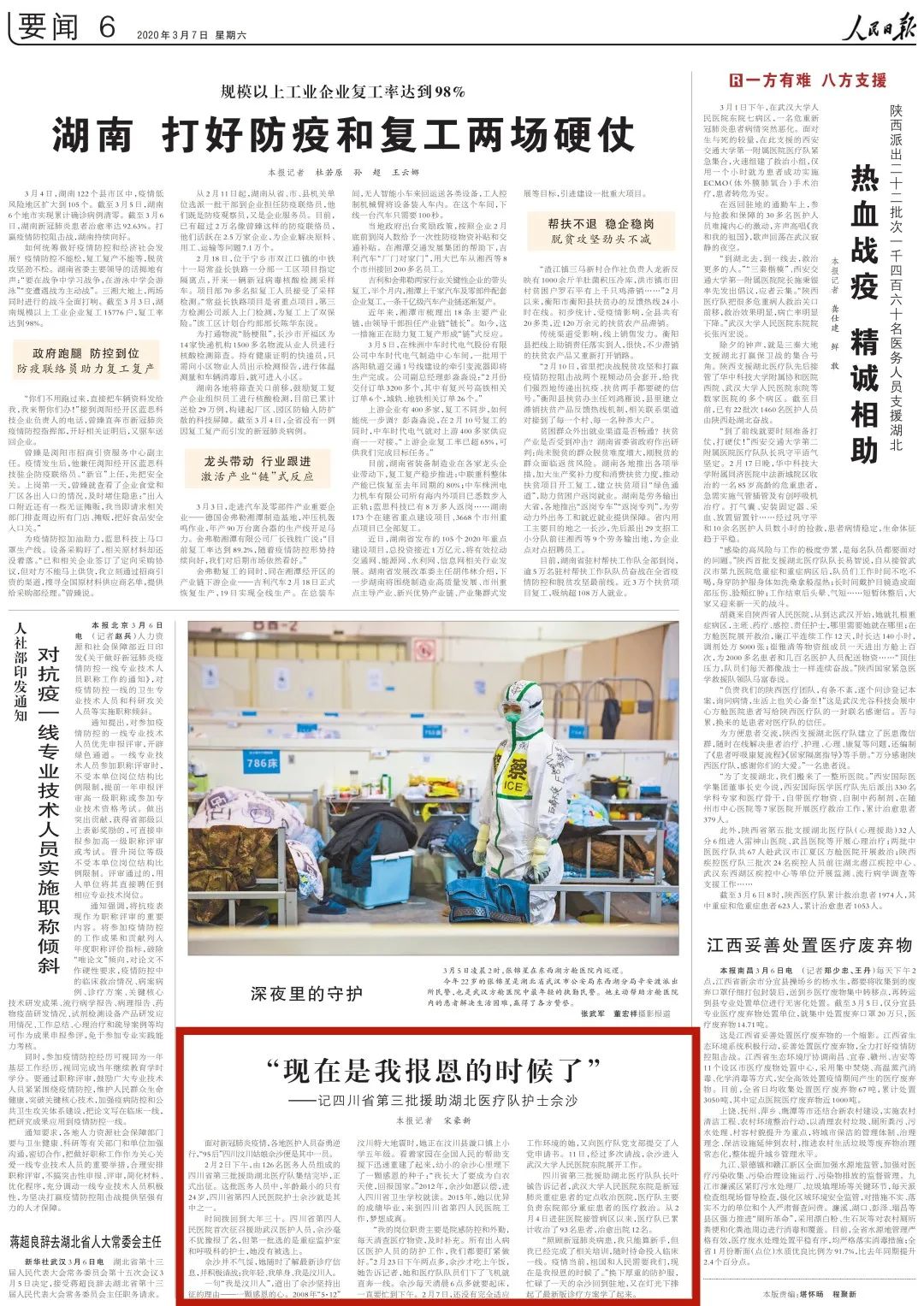 2020年3月7日《人民日报》第6版