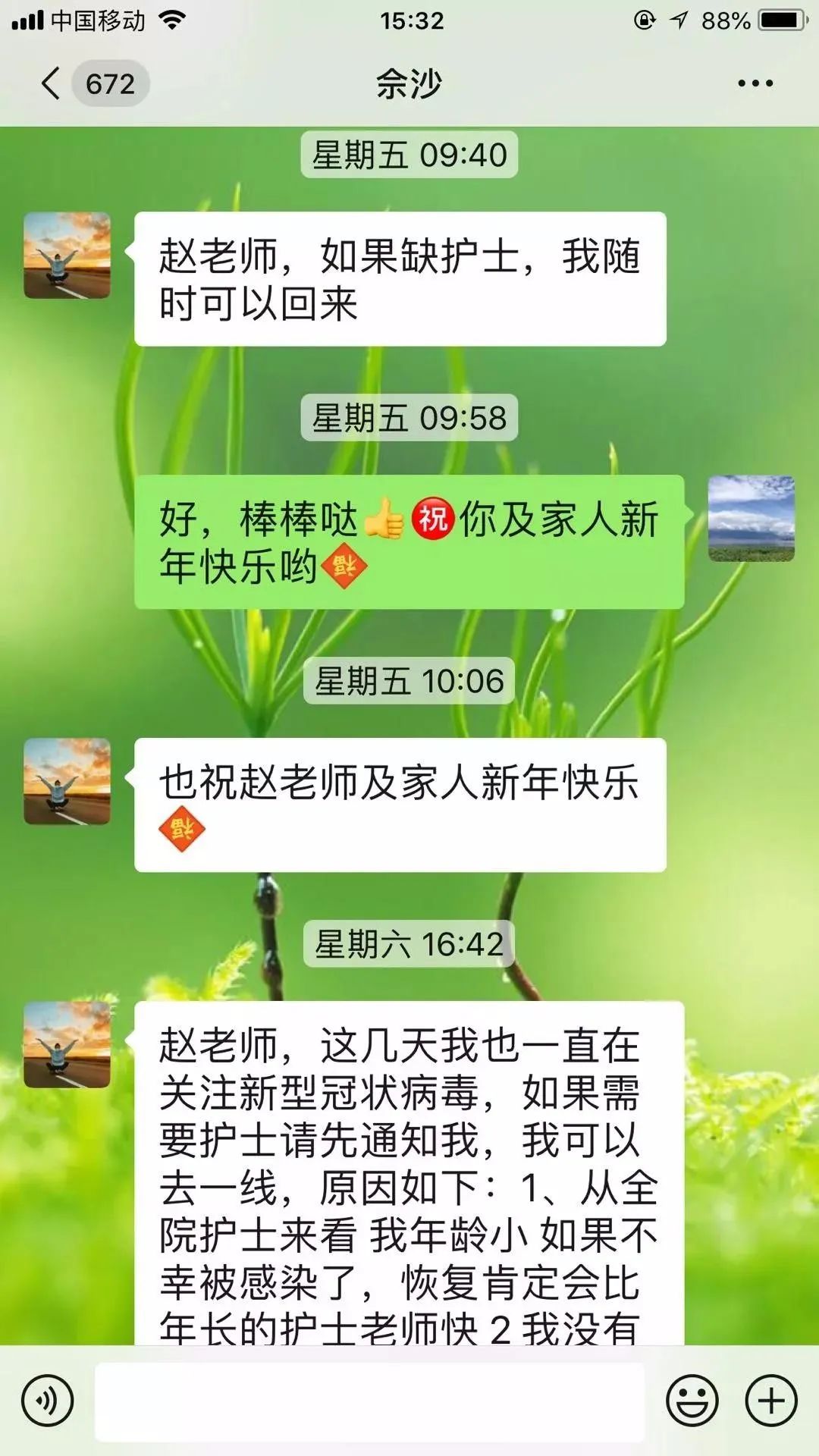佘沙申请前往武汉抗疫前线微信截图(来源:四川省第四人民医院)