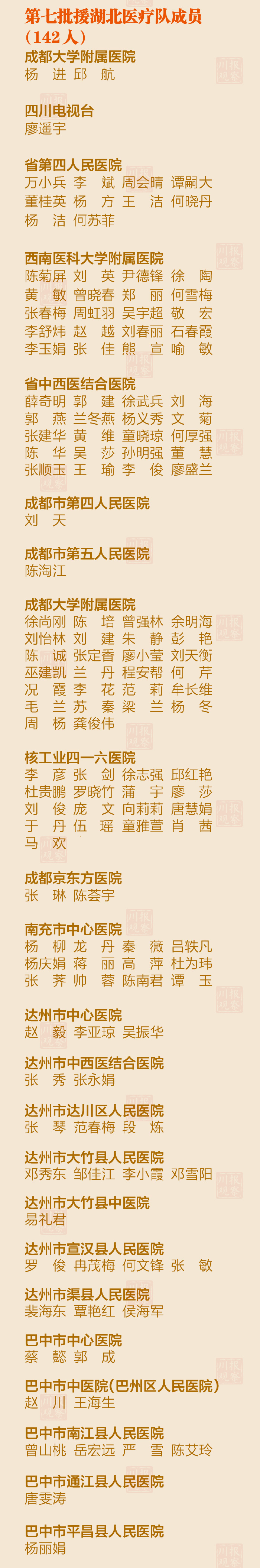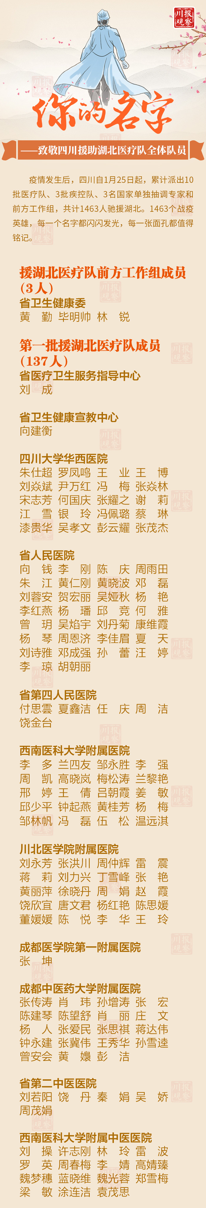 为家乡的援鄂川军点赞!1463名勇士全名单,看看你的家乡人有哪些? 来源:川报观察 发布时间:2020-04-07 13:06:25 浏览次数: 次 【字体:小 大】 来源: 川报观察 终审:何晓波 分享到: 关闭本页 【打印正文】
