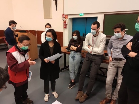 专家组成员一到罗马,就投入战“疫”行动:拜会意大利红十字会、参加使馆工作会议、走访当地大学医院和医学院,与意大利卫生和行政部门进行交流……