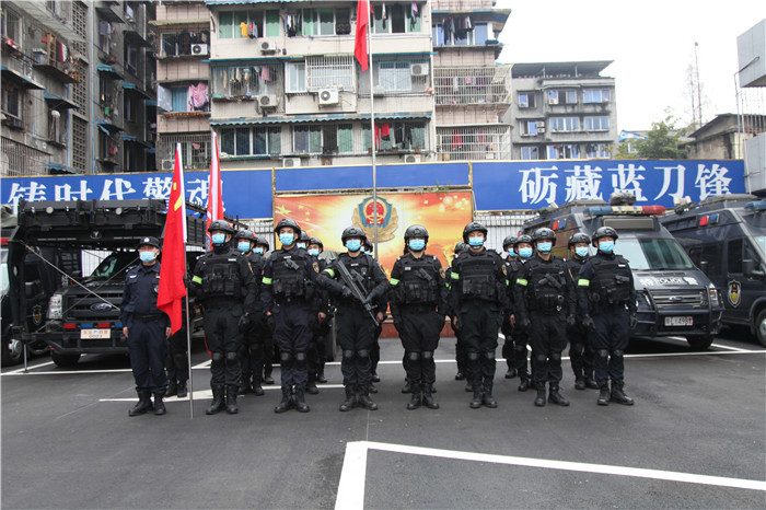 该队曾获评公安部全国公安优秀基层单位、四川省公安厅“最强支部”。新冠肺炎疫情发生以后,特警大队22名青年向党团组织递交印有鲜红手印的请战书,报名参加疫情防控青年突击队,投入到防控疫情工作中。队员取消休假,火速集结,在管控卡口对进出全市车辆人员进行24小时卫生检疫工作,坚决做到“不漏一车、不漏一人”。针对疫情防控期间治安难点,特警大队强化武装巡逻防控,对商户、企业开展隐患排查,开展疫情巡查劝阻和防疫知识宣传,为商企复工复产提供坚实安全保障。