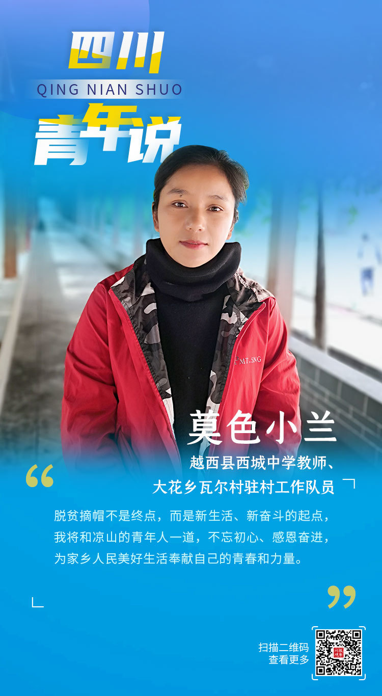 脱贫摘帽不是终点,而是新生活、新奋斗的起点,我将和凉山的青年人一道,不忘初心、感恩奋进,为家乡人民美好生活奉献自己的青春和力量。