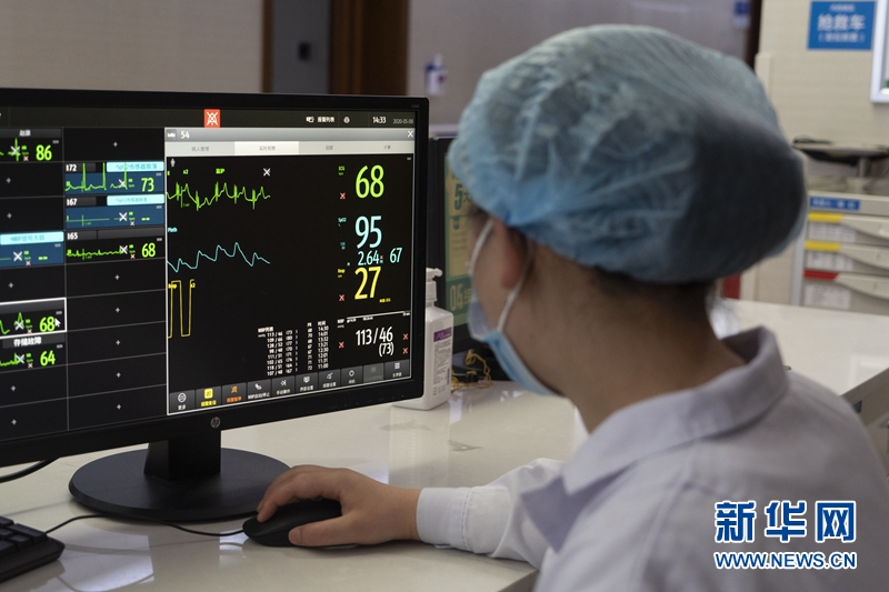 5月8日,在四川省第四人民医院,佘沙在肿瘤科护士站值班。